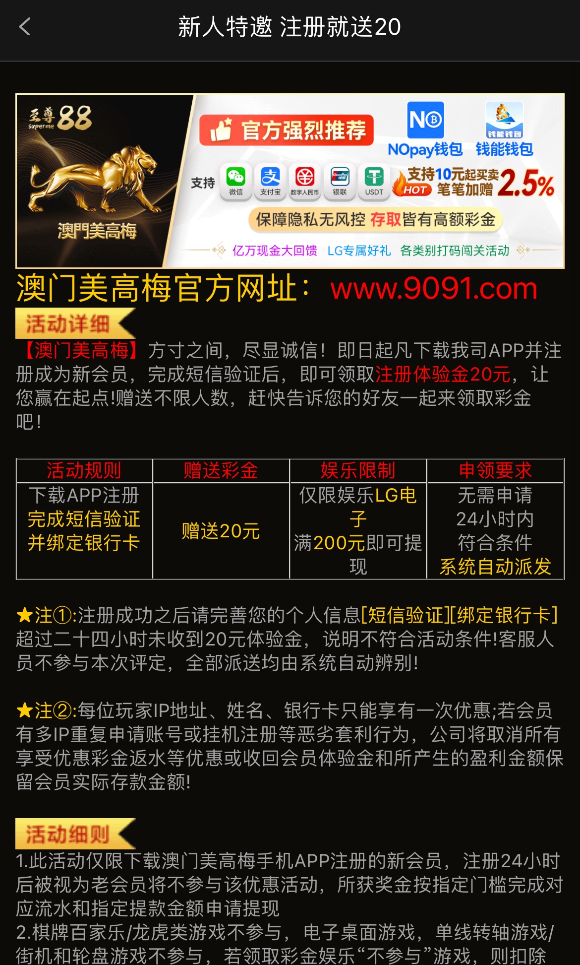 短信特邀注册送20,完成短信验证,绑定银行卡,限lg电子,满200提现,24小时内自动送