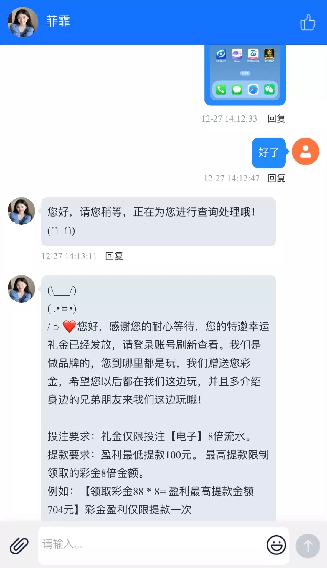 之前注册过没充值过的兄弟可以联系客服碰瓷看看
